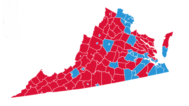 Compare the map below to the Virginia district map above.