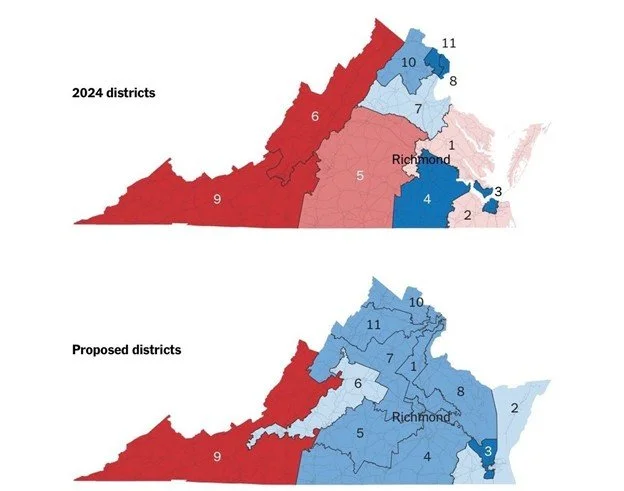 The 2026 Virginia gerrymander is egregious in that it is disenfranchising roughly 49% of its own constituents. Not only is this cause for concern on its own, but Virginia has also joined the National Vote Compact, along with California, Colorado, Connecticut, Delaware, District of Columbia, Hawaii, Illinois, Maine, Maryland, Massachusetts, Minnesota, New Jersey, New Mexico, New York, Oregon, Rhode Island, Vermont, Virginia, Washington. The National Vote Compact awards all of each state’s electoral votes to whichever candidate wins the popular vote, thus dismantling the electoral college. Compact states now comprise 41% of all the country’s electoral college votes. They only need 51% to upend the system permanently. Additionally, the redistricting in Virginia could not have happened without Virginia Democrats flagrantly violating the law. Not only did they hold a special session open for two years; they also purposefully wrote the referendum in an incredibly misleading way and did so despite Virginia having a law that explicitly bans partisan gerrymandering. The Attorney General, now arguing this case, previously openly called for the death of Republicans and was still able to win his election--we will not be holding our breath to see how the case turns out.