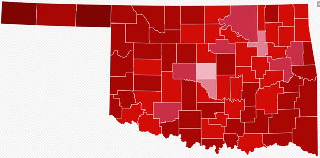Again, it cannot be stressed enough that this is not true in reverse - 31% of Oklahoma voted for Kamala Harris in 2024. Can you show me on the county map where the Democrat stronghold is for Oklahoma, and where districts should be drawn for them?