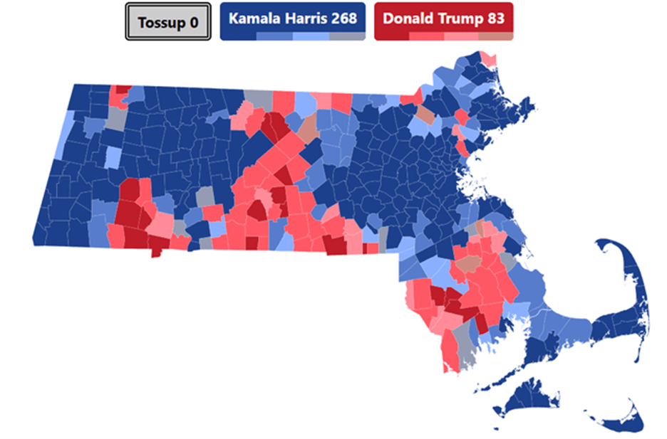 Red states that don’t exhibit higher numbers of Democrat districts do so because their Democrats are centralized into tiny communities that cannot constitute numerous districts, or spread apart so far that they cannot constitute a identifiable community. The same is not true in reverse. Massachusetts, for example, has very clearly definable Republican areas that could easily constitute Republican districts but are given zero representation. Donald Trump won 82 counties in the 2024 election, but the state continually puts forth zero Republican districts, even though you can see where they could easily be placed on the county map.