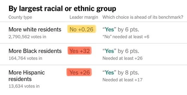 We’ve often talked about the notion that multiculturalism is actually a weakness for the United States, and that diversity is not a strength. While we will not rehash that argument here, but it has become clear that the United States is not one country; it has not achieved E Pluribus Unum. In practice, it is at least two different states fighting for control of the same cultural and political space. One side values tradition, inheritance, and consistent rules. The other simply does not. Take a look at the racial breakdown of the redistricting vote and ask yourself if this is what a homogenous, well-blended society looks like, or if it looks more like two armies competing against one another.